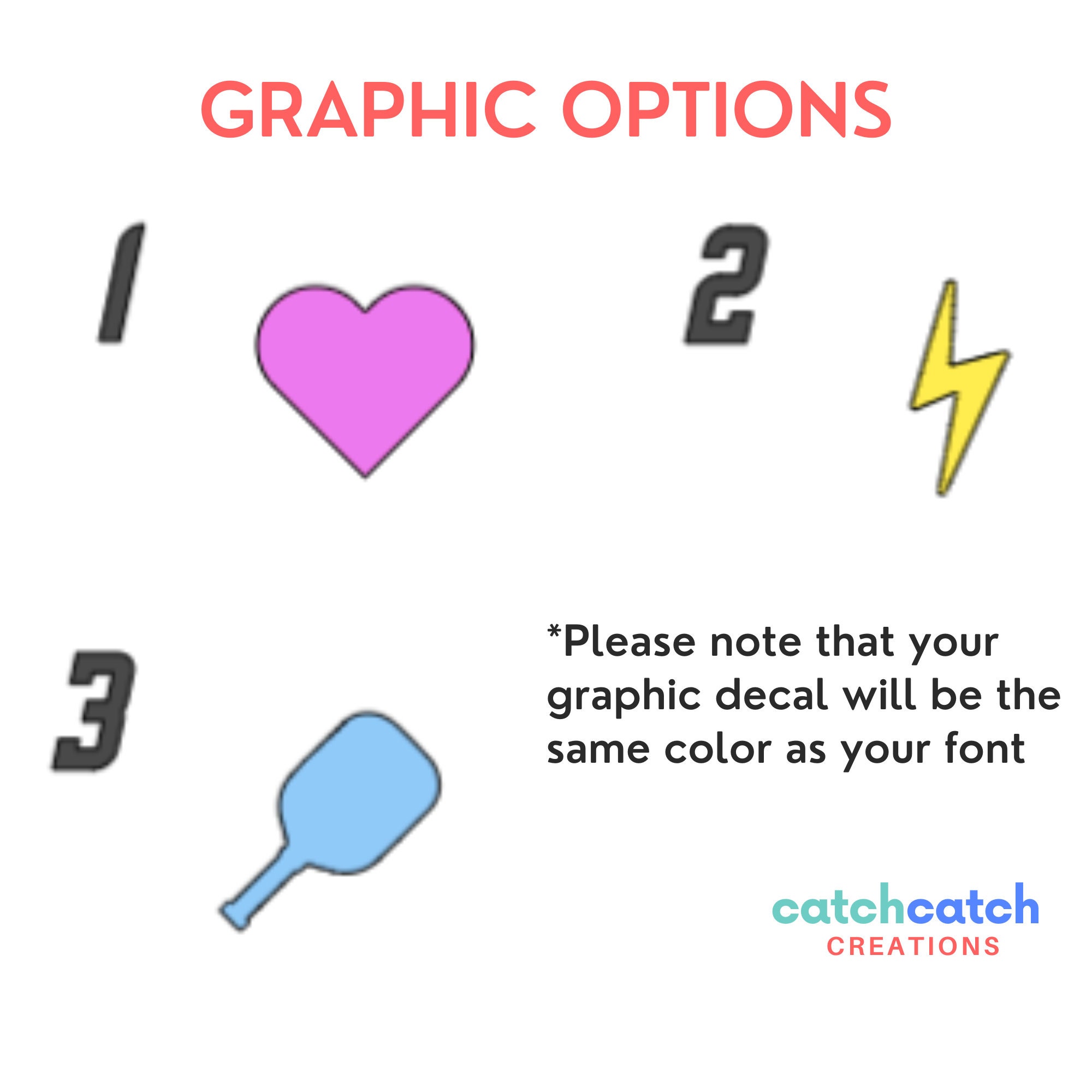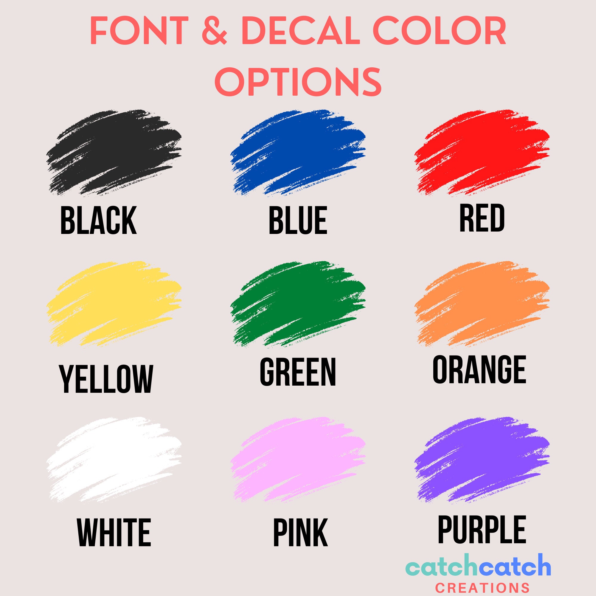 2) In the second dropdown, select the color you'd like the font and graphic. Please note that the name and graphic will be the same color and the graphic will appear on either sides of the name. If ordering the decal + paddle cover bundle, the customization will be the same on both.